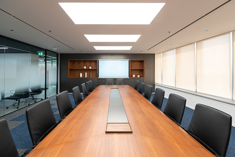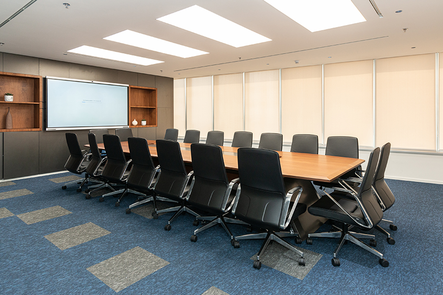 The conference room features an impressive 18-seater wooden table, exuding elegance and sophistication. Accompanied by sleek leather chairs, this space provides the perfect setting for conducive meetings and powerful discussions, ensuring a productive and comfortable environment for all attendees.