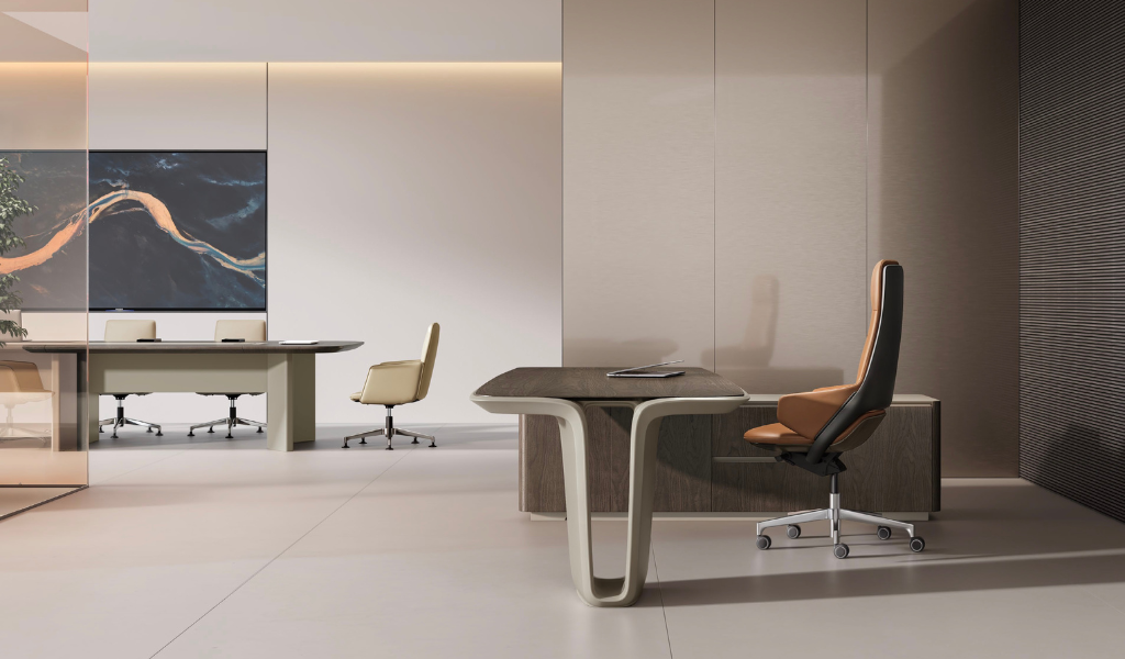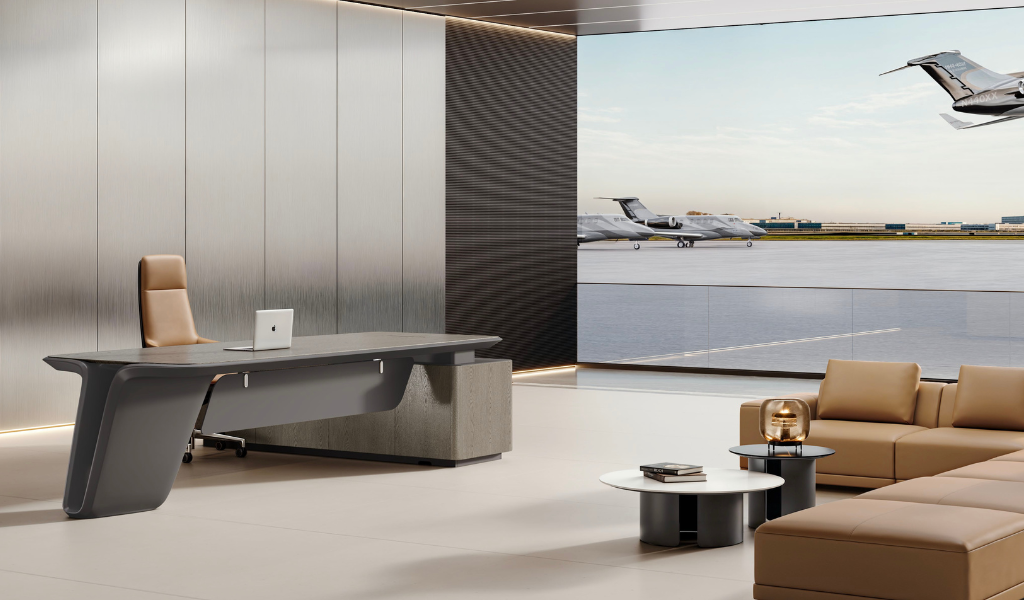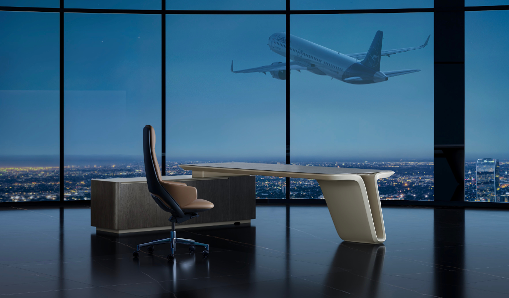 Inspired by the philosophy of freedom and innovation, the Airwing Executive Desk blends sculpted elegance with intelligent design. Its sleek, layered form embodies sophistication while promoting comfort, inclusivity, and focus in every detail — redefining the modern executive workspace.